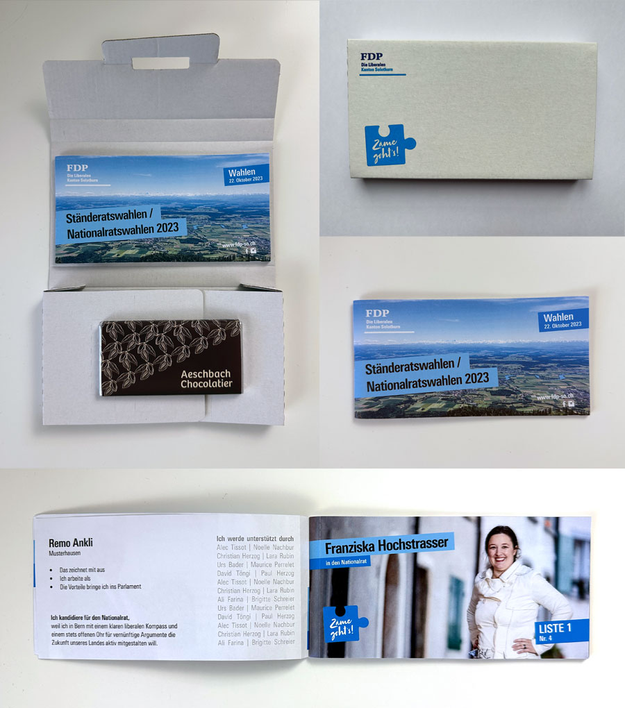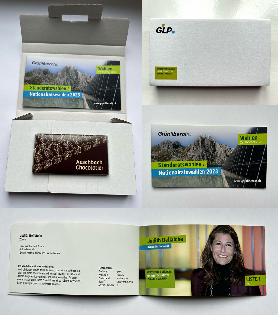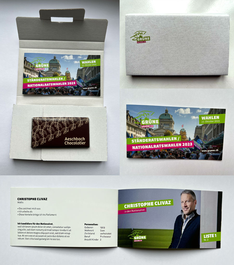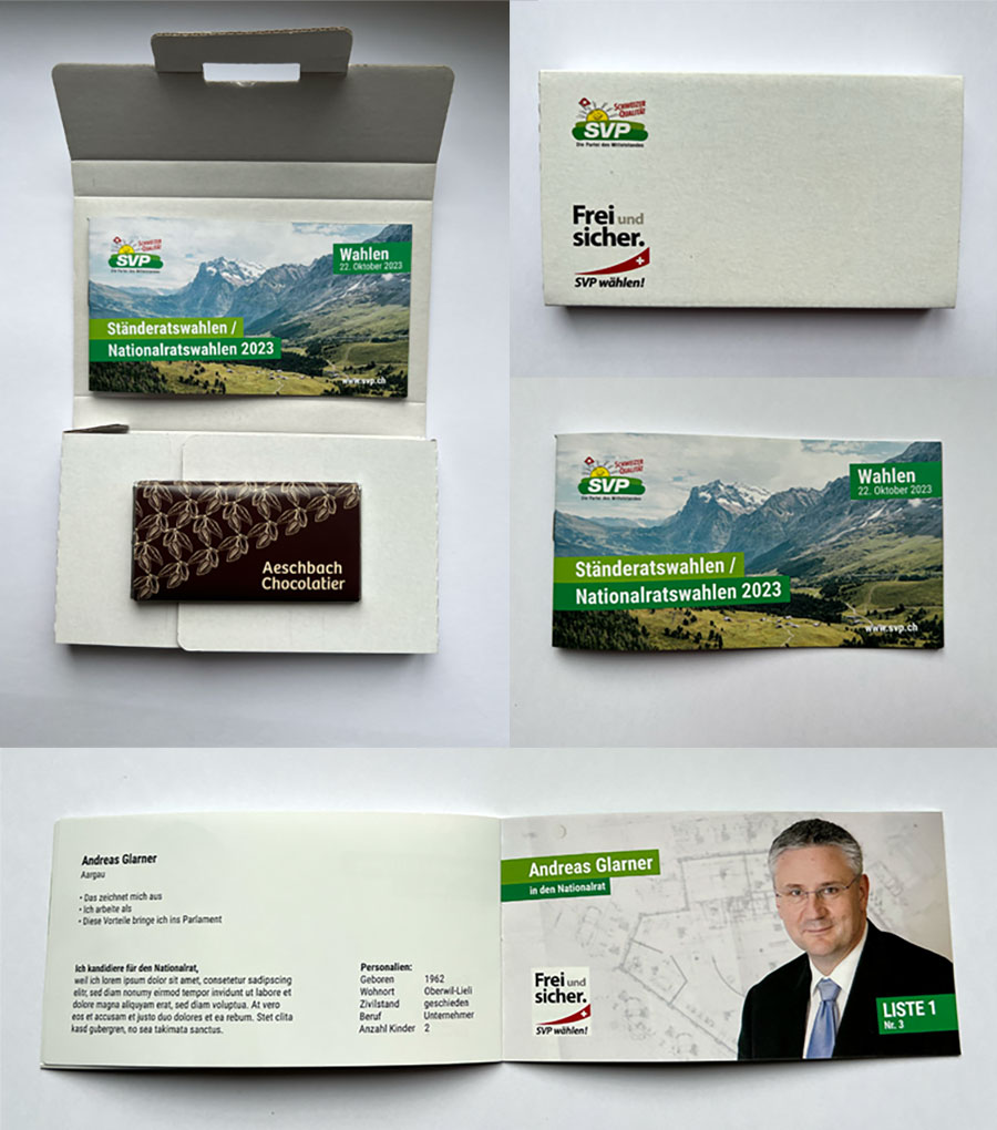 Die Wahlwerbekarte mit Schokolade beinhaltet folgende Leistungen: